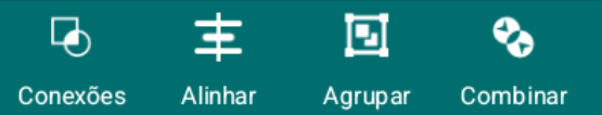 A “Barra de Ferramentas Auxiliar” só ficará visível quando dois ou mais objetos estiverem selecionados. Esta barra contém as ferramentas para editar múltiplos objetos.