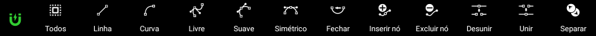 Quando ativada, ao arrastar um “nó” pela tela, ele será atraído por outros “nós” ou segmentos, permitindo conectar vetores com alinhamentos exatos.