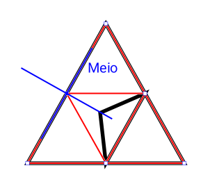 Neste exemplo, o ponto arrastado do triângulo menor se conectou ao centro do segmento esquerdo do triângulo maior.
