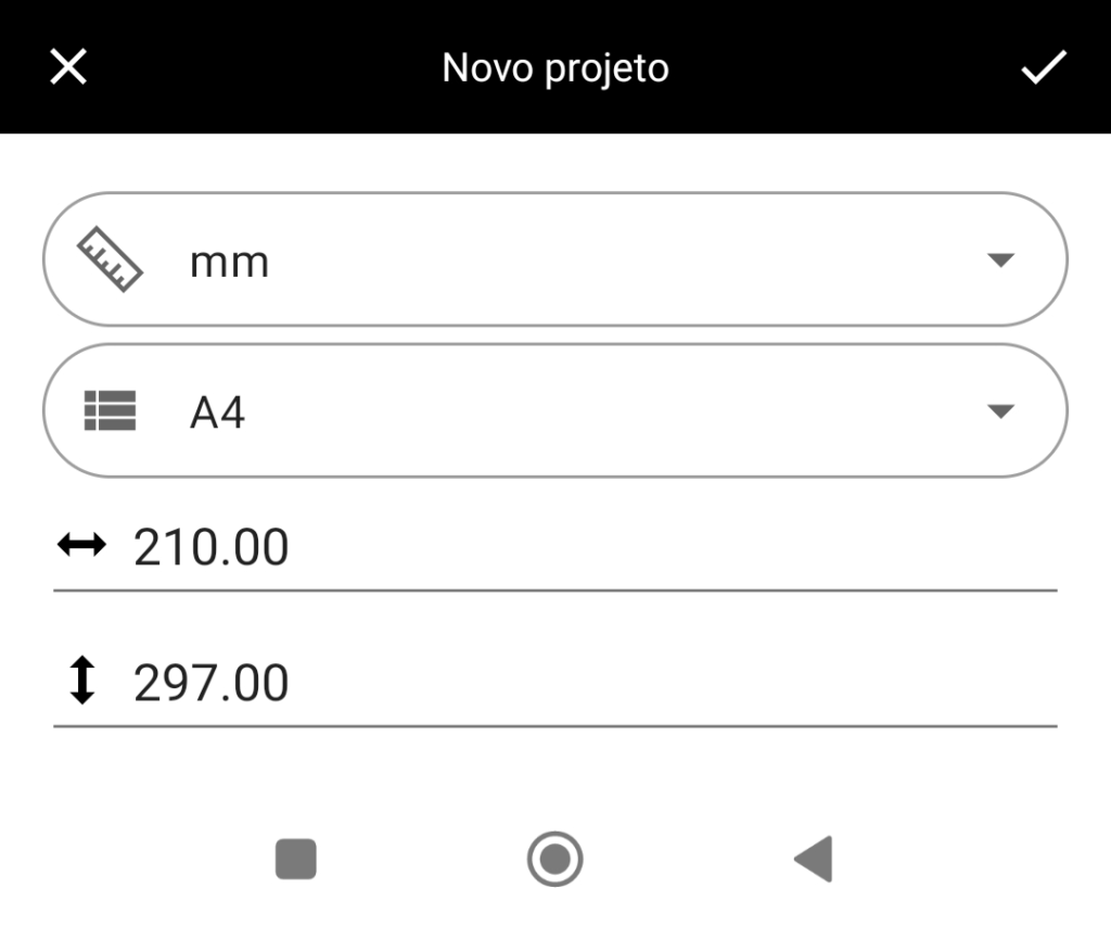 Para salvar o projeto acesse o menu principal e clique em “Salvar projeto”, depois escolha o locar onde deseja salvar o arquivo (dê permissão de acesso ao aplicativo), digite o nome do projeto e confirme.